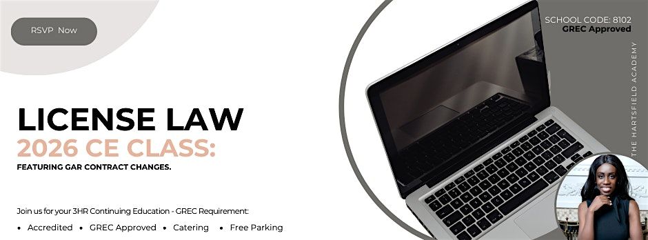 For Georgia Real Estate Agents & Realtors®, Please join us for your required Continuing Education Course on: LICENSE LAW + Leveraging Your License.