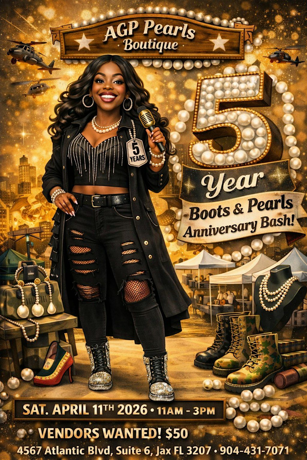 This is a community celebration—bring your lawn chairs, your people, your good energy, and come celebrate with me. AGP Pearls Boutique is giving back, showing love, and having a GREAT time!