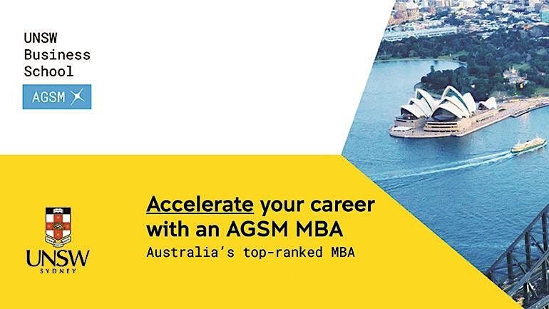 Based in Sydney, Australia, the AGSM @ UNSW Business School’s globally ranked and recently revamped Full-Time MBA program is taught by internationally recognised academics and Executives-in-Residence from leading corporate and government organisations. Students are immersed in active learning experiences and are exposed to practical skills and tools they can immediately apply to real-world business problems. In addition to the foundational courses such as strategy, finance and marketing, an MBA should include contemporary elective courses including innovation, entrepreneurship, digital transformation, technology, and social impact.