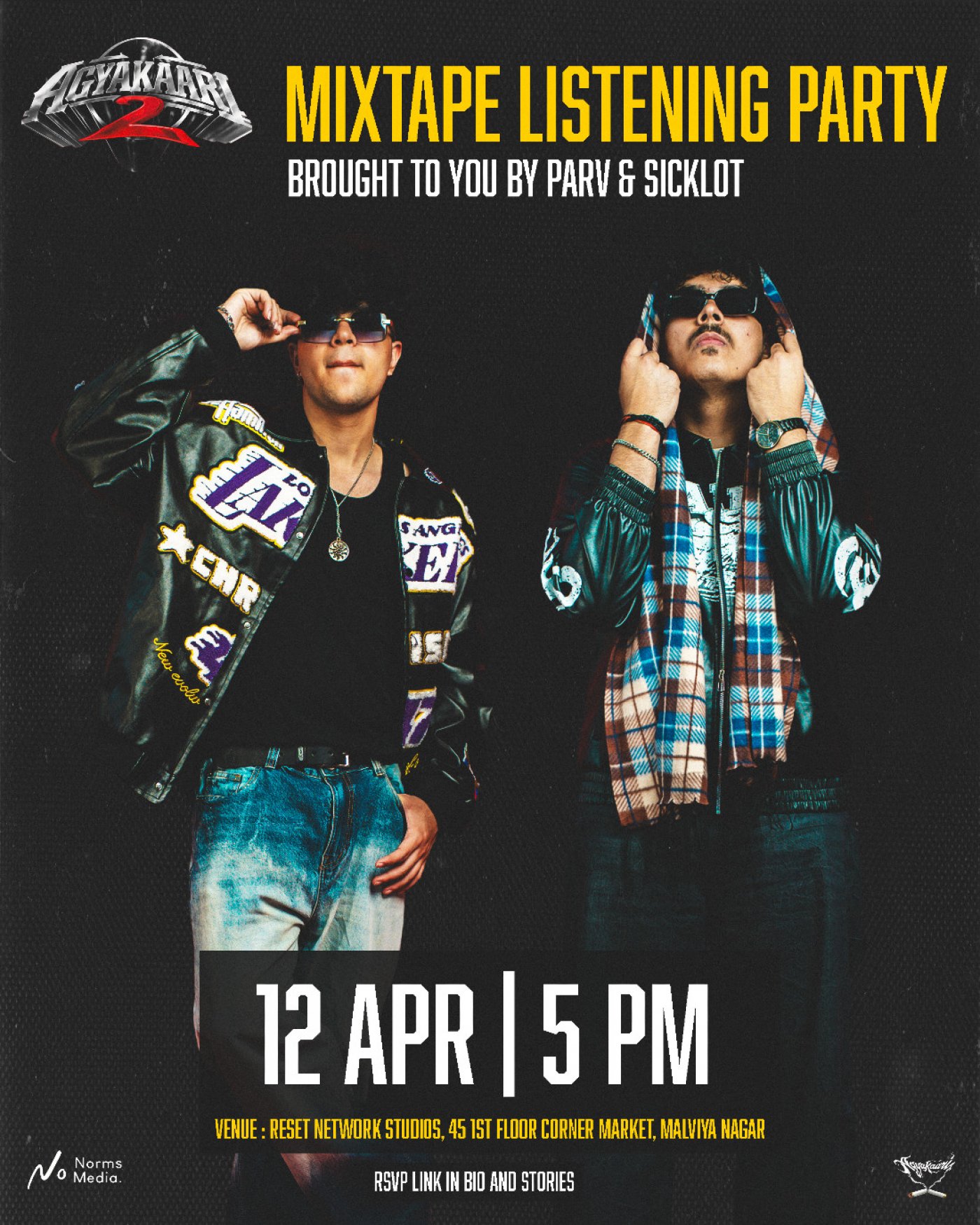 Join us for an electrifying evening celebrating the release of the highly anticipated mixtape "Agyakaari 2" by Parv & SickLot. 🚀 Dive into an immersive experience where music and passion collide, promising an unforgettable musical fiesta for every DHH enthusiast!