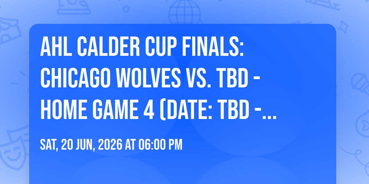 🌟 Step into a world of wonder at AHL Calder Cup Finals: Chicago Wolves vs. TBD - Home Game 4 (Date: TBD - If Necessary), where extraordinary moments await! 🏛️ Located at Allstate Arena in dynamic Rosemont, IL, this event will become the talk of the town. 📅 Join us on June 20th, 2026 at 06:00 PM for a celebration that defies the ordinary. ✨ This curated experience brings together the best of entertainment, culture, and community spirit. Every detail has been thoughtfully planned to ensure an unforgettable experience for all our guests. 🎯 Take advantage of this opportunity to be part of something special. 🎊 Early registration is recommended as space is limited!http://maps.seatics.com/AllstateArena_Hockey_2023-07-19_2023-07-19_1501_07192023_082911_SVGC_tn.png