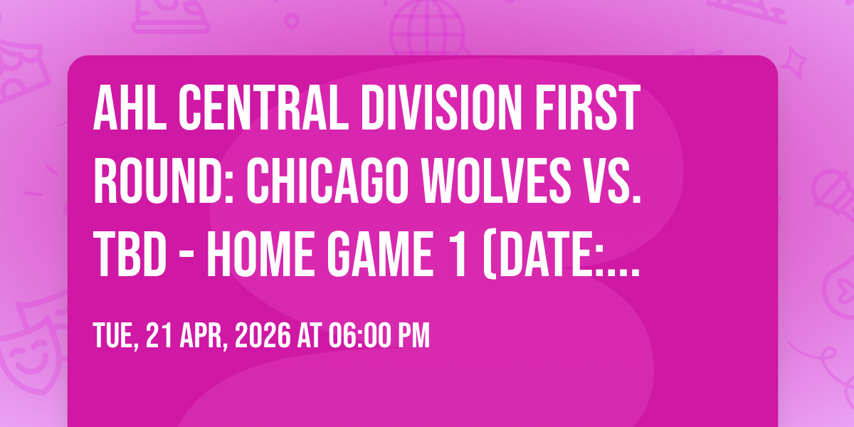 ✨ Embark on an extraordinary journey at AHL Central Division First Round: Chicago Wolves vs. TBD - Home Game 1 (Date: TBD - If Necessary), where every moment promises to be unforgettable! 🌟 Imagine of transforming Allstate Arena in the heart of Rosemont, IL into a realm of endless possibilities. 📅 Join us on April 21st, 2026 at 06:00 PM for an experience that will challenge your imagination and exceed your expectations. 🎯 This carefully curated event combines the finest elements of entertainment, innovation, and community spirit. Whether you're an adventure seeker, culture enthusiast, or someone looking for unique experiences, this event offers something special for everyone. 🎊 Don't miss this chance to be part of something extraordinary!http://maps.seatics.com/AllstateArena_Hockey_2023-07-19_2023-07-19_1501_07192023_082911_SVGC_tn.png