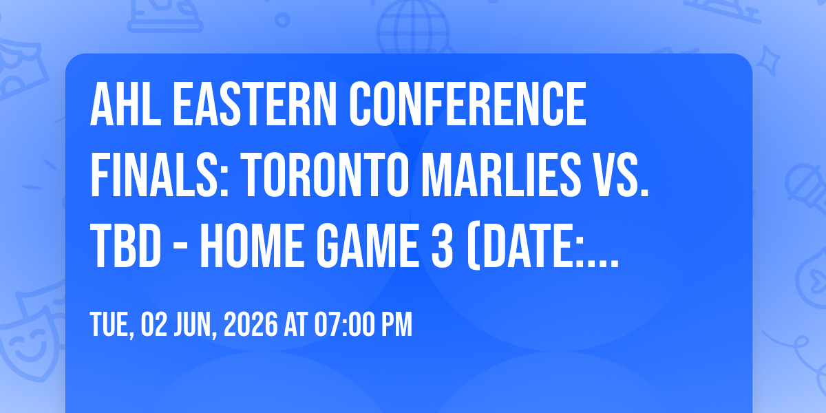 ✨ Discover the extraordinary at AHL Eastern Conference Finals: Toronto Marlies vs. TBD - Home Game 3 (Date: TBD - If Necessary), where magic meets reality in ways you've never imagined! 🏛️ Set in Coca-Cola Coliseum nestled in bustling Toronto, ON, this event promises to be a landmark occasion. 📅 Taking place on June 2nd, 2026 at 07:00 PM, it's going to create an atmosphere where every moment becomes a cherished memory. 🌟 Immerse yourself in an experience crafted with attention to every detail, designed to surprise and delight at every turn. They have worked tirelessly to ensure this event exceeds all expectations, bringing together elements of entertainment, innovation, and pure joy. 🎊 Don't miss your chance to be part of this remarkable journey!http://maps.seatics.com/RicohColiseum_Hockey_2016-12-09_2016-12-09_1409_SVGC_tn.gif