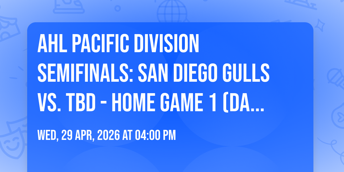 🌟 Journey into wonder at AHL Pacific Division Semifinals: San Diego Gulls vs. TBD - Home Game 1 (Date: TBD - If Necessary), where extraordinary experiences await around every corner! 🏛️ Set against the backdrop of Pechanga Arena - San Diego in dynamic San Diego, CA, this event promises to exceed all expectations. 📅 Join us on April 29th, 2026 at 04:00 PM for a celebration that combines innovation, entertainment, and community spirit in perfect harmony. ✨ There will be an atmosphere where memories are made and stories come alive, ensuring every guest experiences something truly remarkable. 🎊 This is more than just an event; it's a journey into the extraordinary!http://maps.seatics.com/PechangaArena_Hockey_2025-01-06_2024-01-06_1037_01062025_105035_SVGC_tn.png