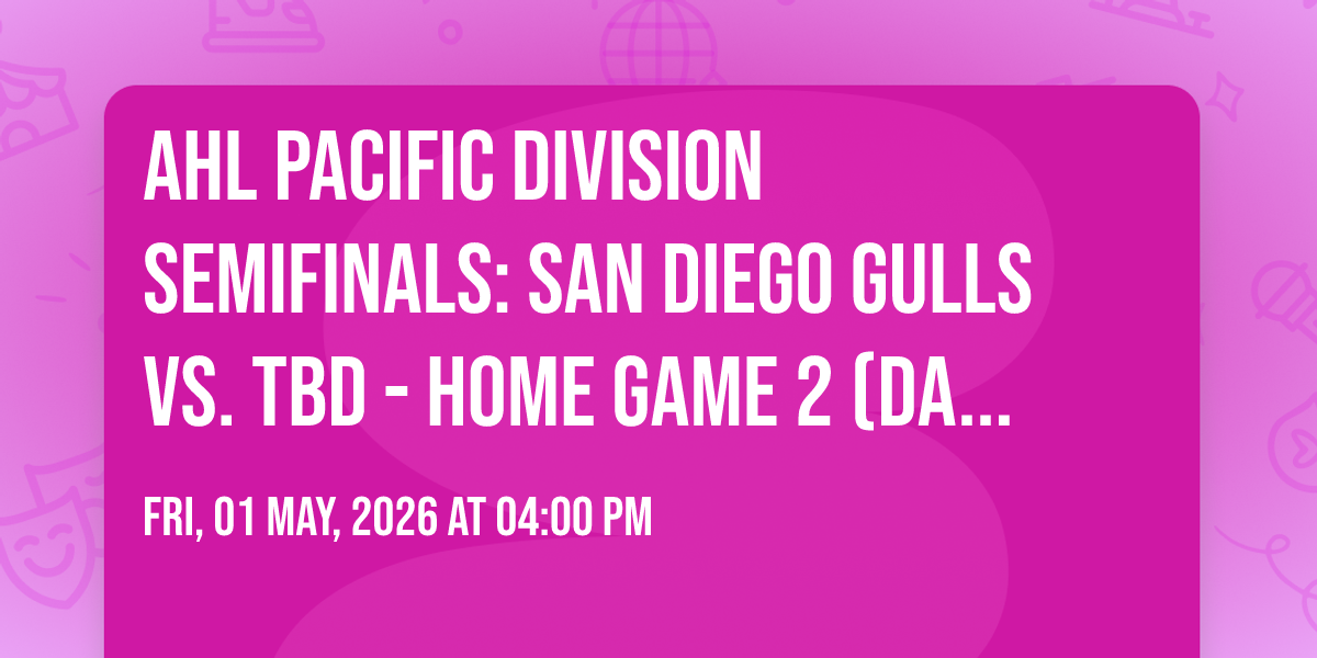 ✨ Embark on an extraordinary journey at AHL Pacific Division Semifinals: San Diego Gulls vs. TBD - Home Game 2 (Date: TBD - If Necessary), where every moment promises to be unforgettable! 🌟 Imagine of transforming Pechanga Arena - San Diego in the heart of San Diego, CA into a realm of endless possibilities. 📅 Join us on May 1st, 2026 at 04:00 PM for an experience that will challenge your imagination and exceed your expectations. 🎯 This carefully curated event combines the finest elements of entertainment, innovation, and community spirit. Whether you're an adventure seeker, culture enthusiast, or someone looking for unique experiences, this event offers something special for everyone. 🎊 Don't miss this chance to be part of something extraordinary!http://maps.seatics.com/PechangaArena_Hockey_2025-01-06_2024-01-06_1037_01062025_105035_SVGC_tn.png