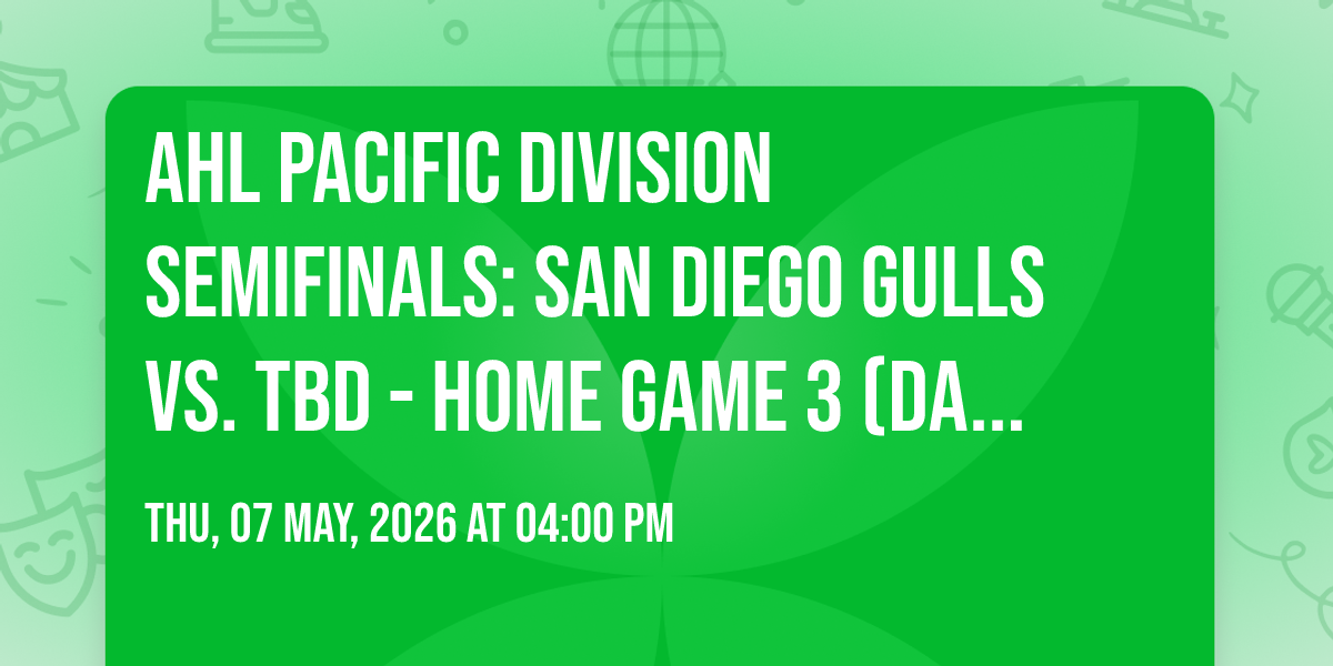 🌟 Journey into wonder at AHL Pacific Division Semifinals: San Diego Gulls vs. TBD - Home Game 3 (Date: TBD - If Necessary), where extraordinary experiences await around every corner! 🏛️ Set against the backdrop of Pechanga Arena - San Diego in dynamic San Diego, CA, this event promises to exceed all expectations. 📅 Join us on May 7th, 2026 at 04:00 PM for a celebration that combines innovation, entertainment, and community spirit in perfect harmony. ✨ There will be an atmosphere where memories are made and stories come alive, ensuring every guest experiences something truly remarkable. 🎊 This is more than just an event; it's a journey into the extraordinary!http://maps.seatics.com/PechangaArena_Hockey_2025-01-06_2024-01-06_1037_01062025_105035_SVGC_tn.png