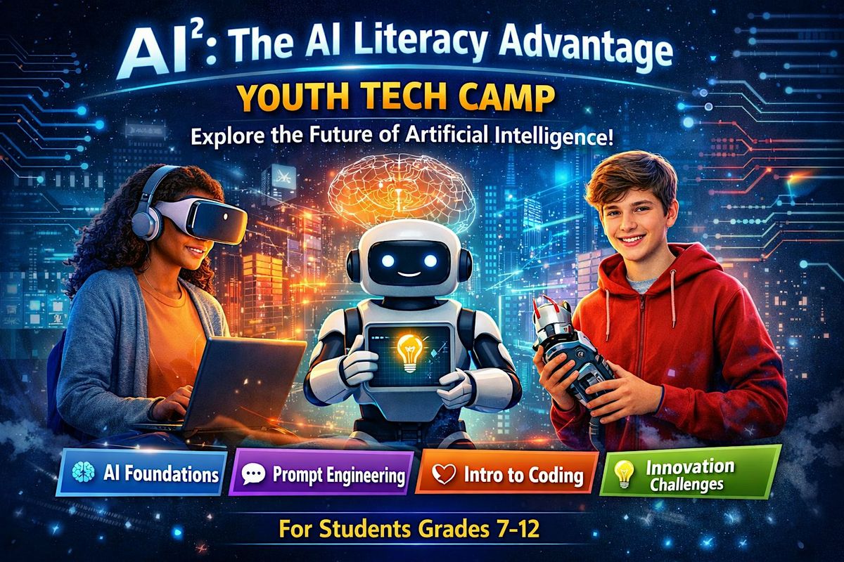 AI²: The AI Literacy Advantage is an engaging two-day learning experience designed to introduce students ages 13-18 to the exciting world of artificial intelligence, innovation, and technology.