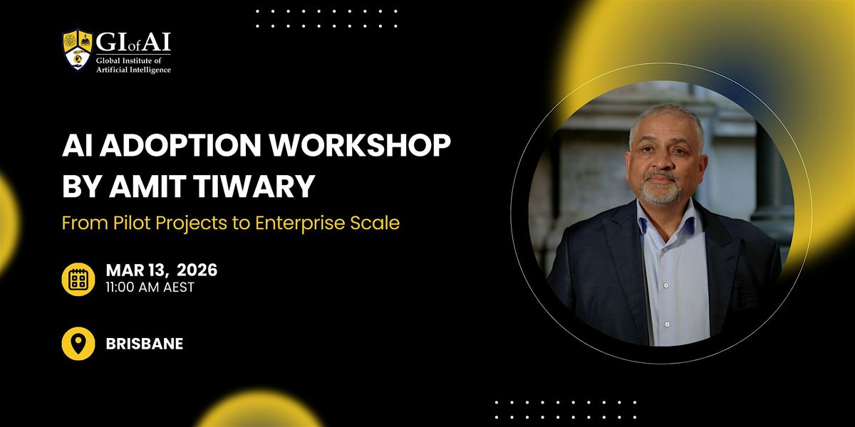 Welcome to the AI Adoption Workshop with Amit Tiwary! Join us at Level 1, 2, and 3 on March 13, 2026, at 11:00 AM AEST for an exciting journey from pilot projects to enterprise scale. Whether you're new to AI or looking to expand its implementation, this workshop is perfect for you. Let's dive deep into the world of artificial intelligence together!