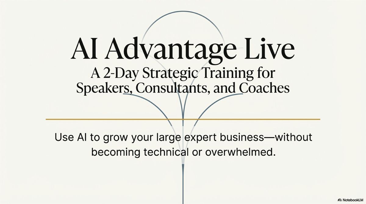 AI Advantage Live is specifically designed for professional speakers, consultants, and coaches. Rather than focusing on complex technical theories, the event offers practical strategies for integrating artificial intelligence into expert-led business models. Participants will learn to accelerate content creation, streamline sales processes, and identify new revenue streams through applied workflows.