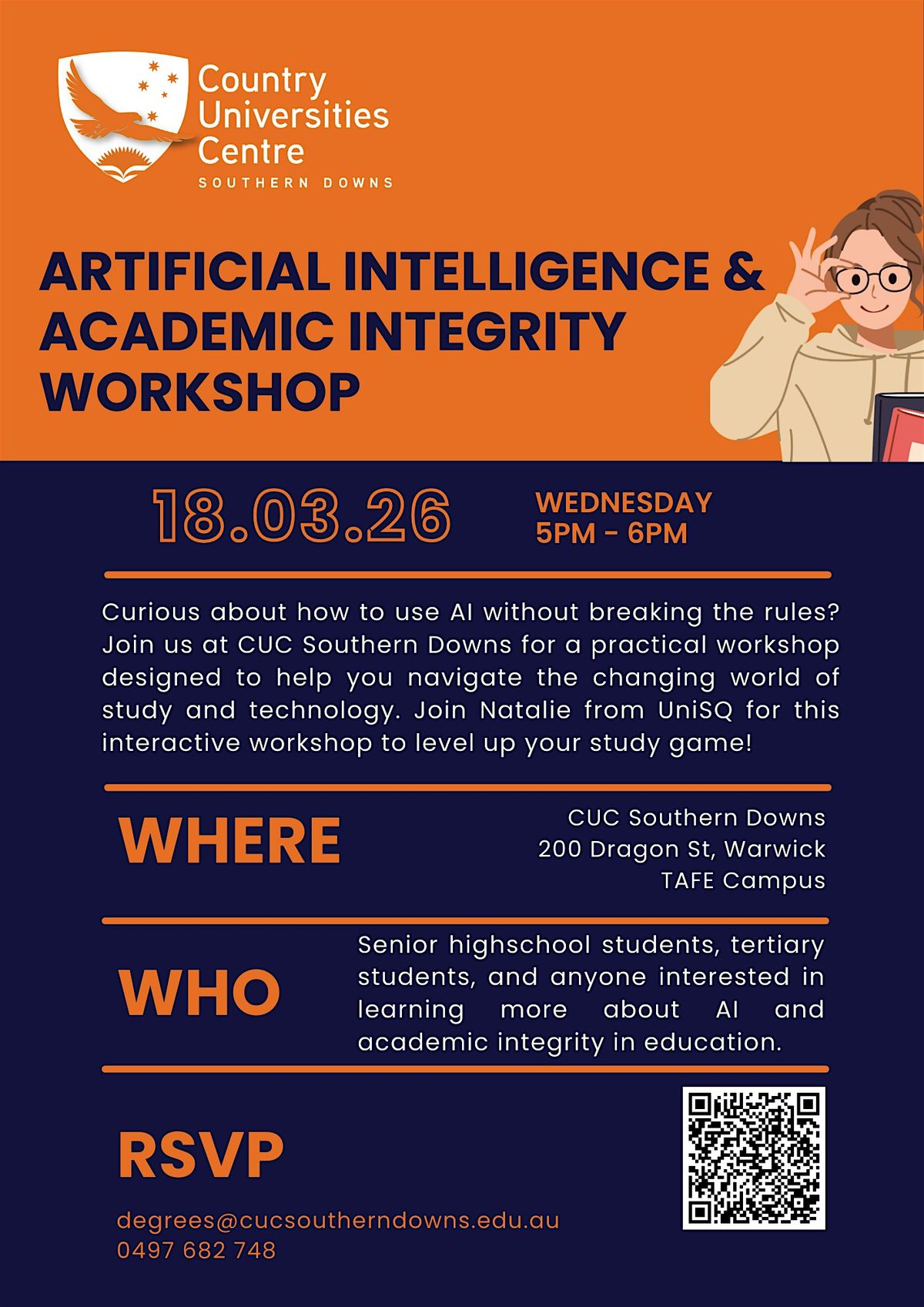 Curious about how to use AI without breaking the rules? Join us at CUC Southern Downs for a practical workshop designed to help you navigate the changing world of study and technology.