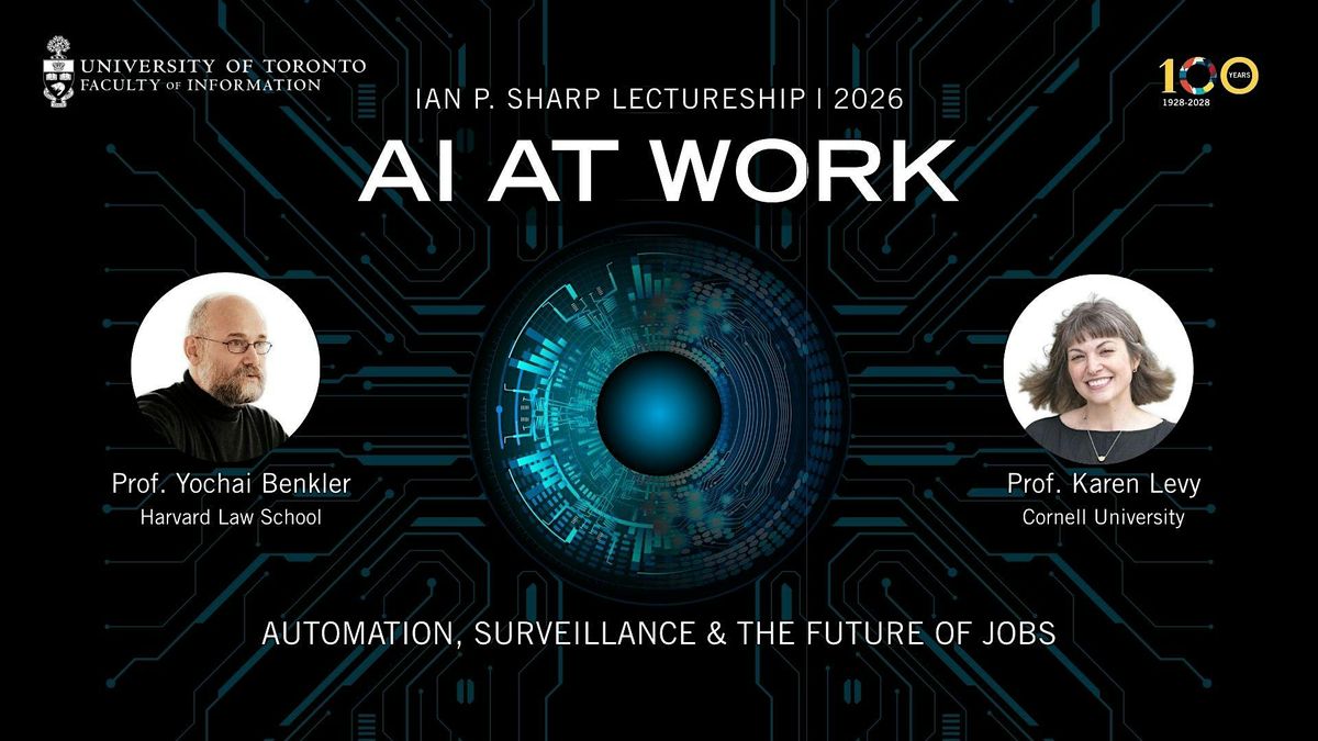This year’s Ian P. Sharp Lecture, hosted by the Faculty of Information at the University of Toronto, brings together Yochai Benkler of Harvard Law School and Karen Levy of Cornell University for a timely public conversation on automation, workplace surveillance and the future of jobs. In conversation with moderator Vera Khovanskaya of the University of Toronto, they will explore how data-driven systems are reshaping the way work is assigned, measured and managed.