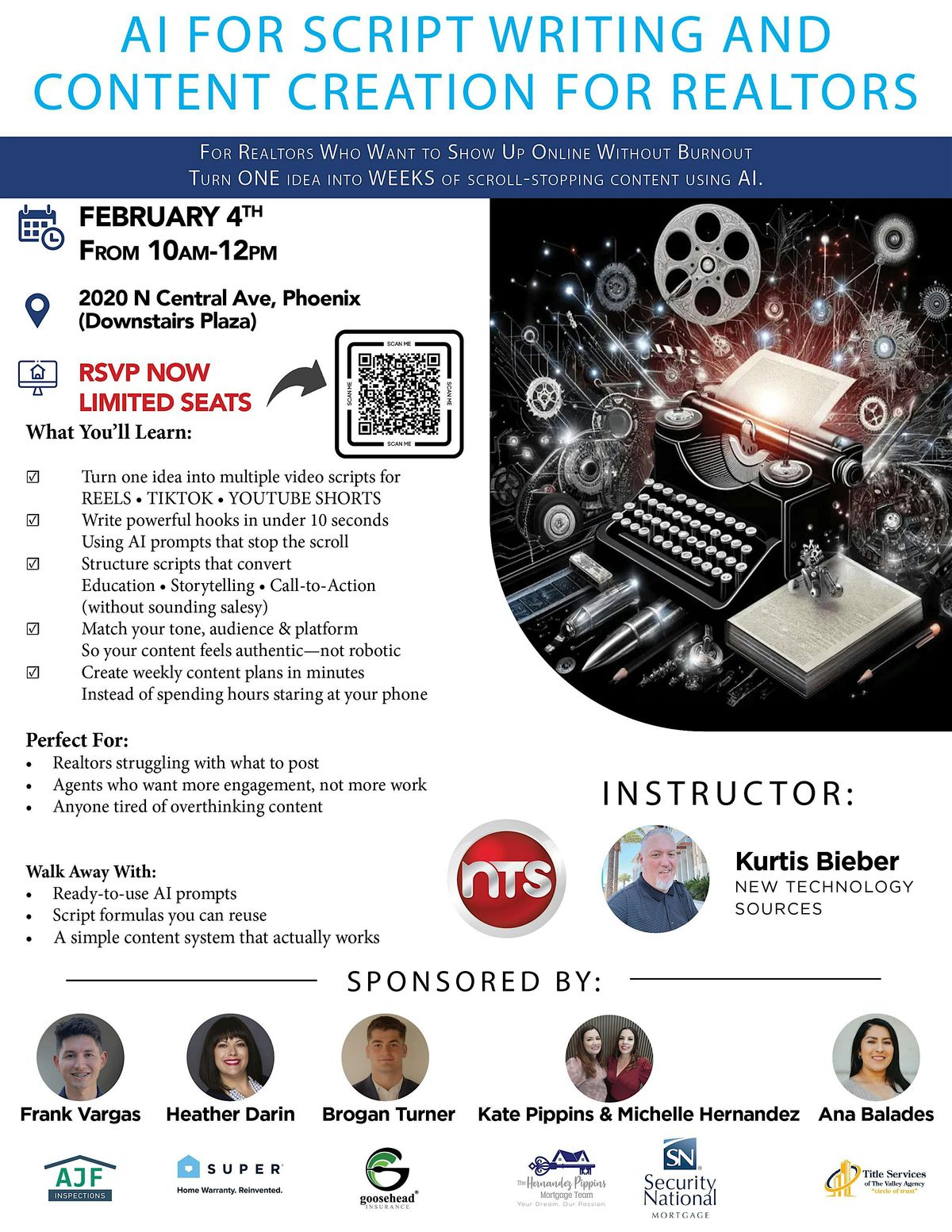 Join us for an exciting in-person event where you'll explore how artificial intelligence is changing the game for script writing and content creation.