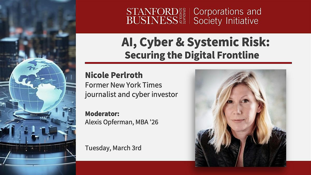 Join Nicole Perlroth, bestselling author and former New York Times cybersecurity reporter, for a conversation on how corporations balance profit with security—and what happens when systems fail or data is compromised. As AI becomes embedded in cybersecurity, it’s transforming both the scale and nature of threats. At the same time, AI is also reshaping the defense landscape. This dual role—enabling attacks while strengthening defenses—raises urgent questions for risk management, institutional resilience, governance, and cross-sector coordination. Perlroth has been sounding the alarm on how cyber threats are evolving and why the security community may need to rethink its red lines and response in this new environment.