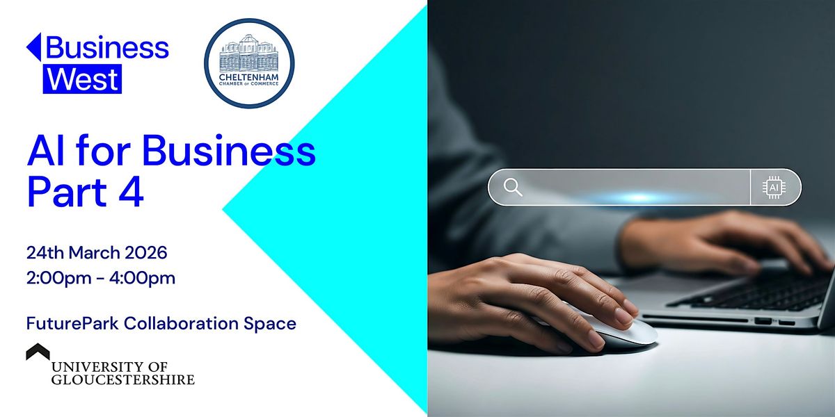 Following on from our previous AI for Business webinars, Business West and Cheltenham Chamber, in partnership with the University of Gloucestershire, are pleased to bring the series into the room with an in-person, workshop-style session designed to move from discussion to practical application.