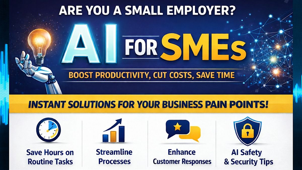 This FREE interactive workshop is designed specifically for small and medium-sized employers who want to understand how Artificial Intelligence (AI) can realistically save time, reduce costs and improve productivity — without needing any technical background.