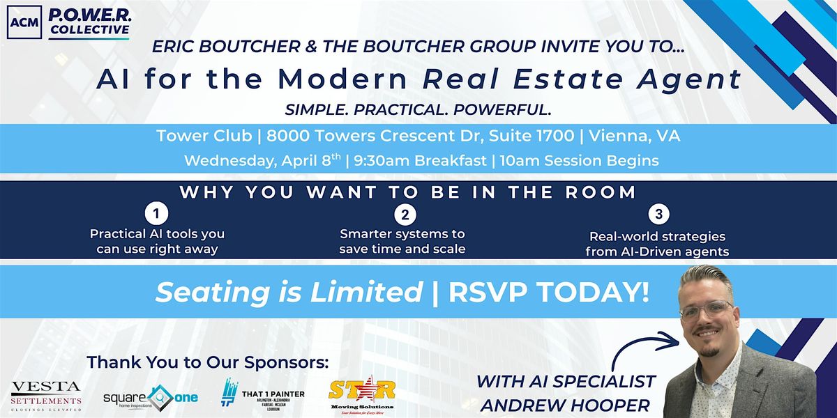 Enjoy breakfast while learning how practical AI tools and smarter systems can help you save time, scale your business, and stay competitive. Guest speaker Andrew Hooper, AVP of Strategic Partnerships & Innovation at Fidelity National Financial, will share real-world insights and strategies you can start using right away.