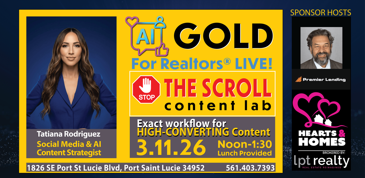 Join us March 11th from 12:00–1:30 PM for a hands-on AI content workshop designed exclusively for Realtors.