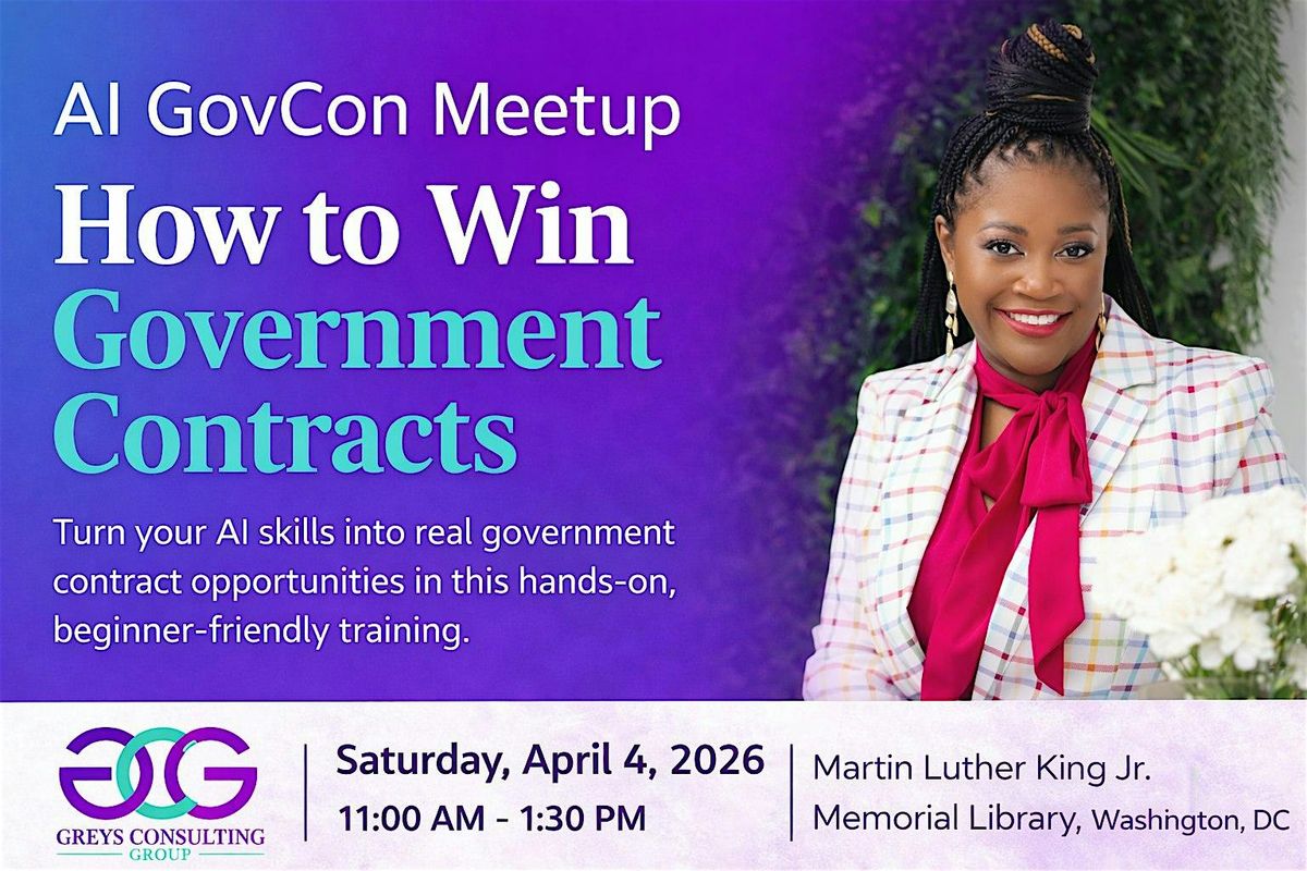 Join us for the AI GovCon Meetup, a structured, hands-on training focused on equipping participants with the knowledge, tools, and strategies required to identify, evaluate, and pursue government contract opportunities. Hosted by Dr. Ebony Grey under the nonprofit BrandHer, this free community event is centered on expanding access, building capability, and creating pathways to economic opportunity across federal, state, and corporate sectors.