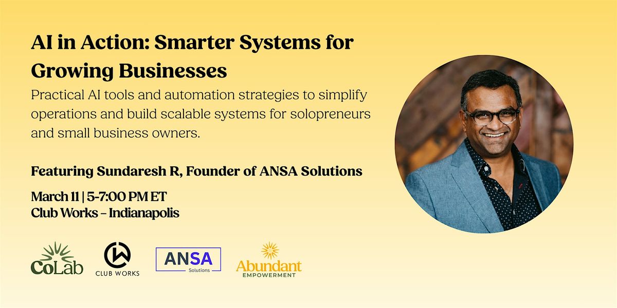 This event is a collaboration between ANSA Solutions and CoLab, bringing together practical AI expertise and a community of independent leaders committed to building better businesses.