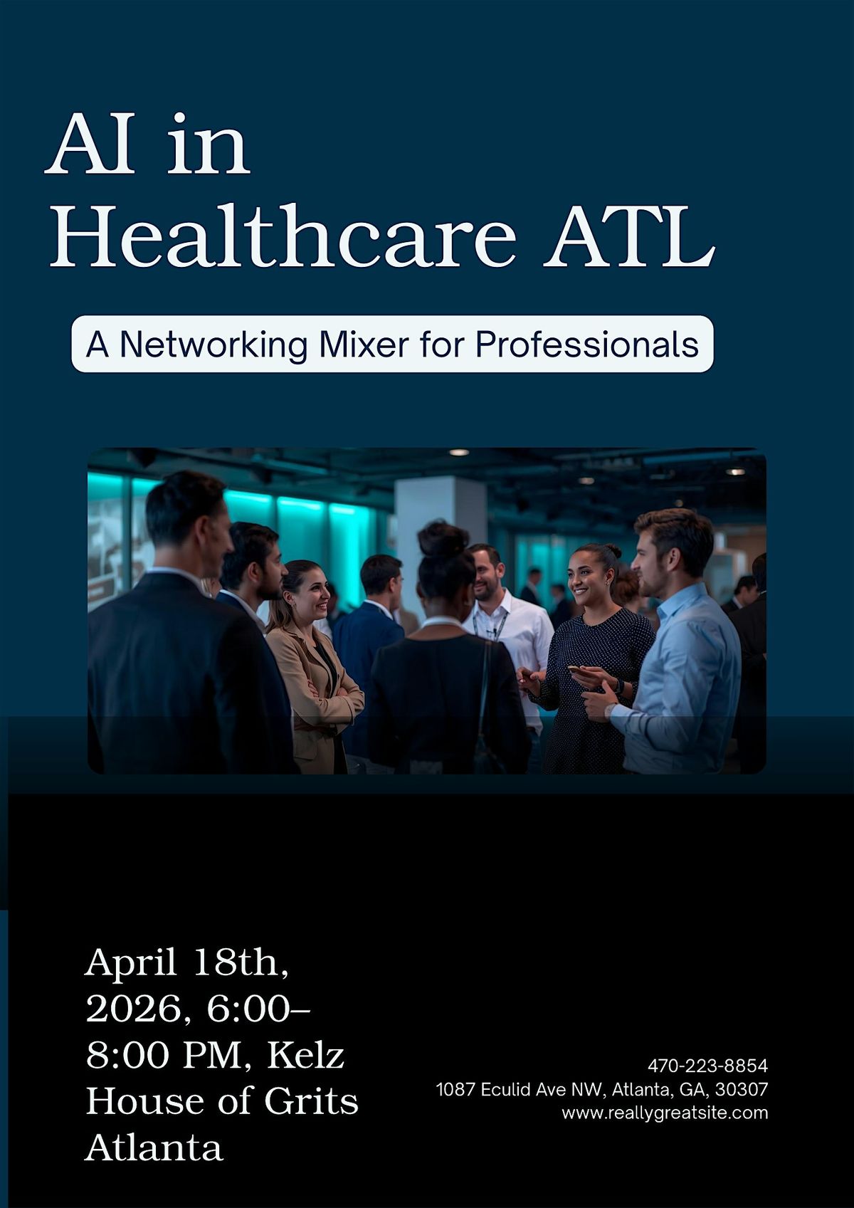 Get ready for a fun and insightful evening at Kelz Kitchen on April 16, 2026 at 6:00 PM (Eastern Time). Dive into the latest trends and innovations in AI and healthcare, meet fellow enthusiasts, and enjoy great conversations in a relaxed setting. Whether you're a pro or just curious, this event is the perfect chance to learn and connect. Open Bar from 6:00pm - 7:00pm. Don't miss out!