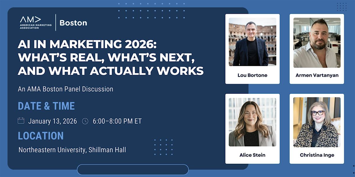 Join the American Marketing Association for an engaging evening with three leaders who bring strategic, creative, and performance-driven perspectives on the future of AI in marketing. This panel will explore how generative and agentic AI are reshaping go-to-market strategy, video and creative, search and paid media, and the ethical foundations marketers need to build for sustainable growth.