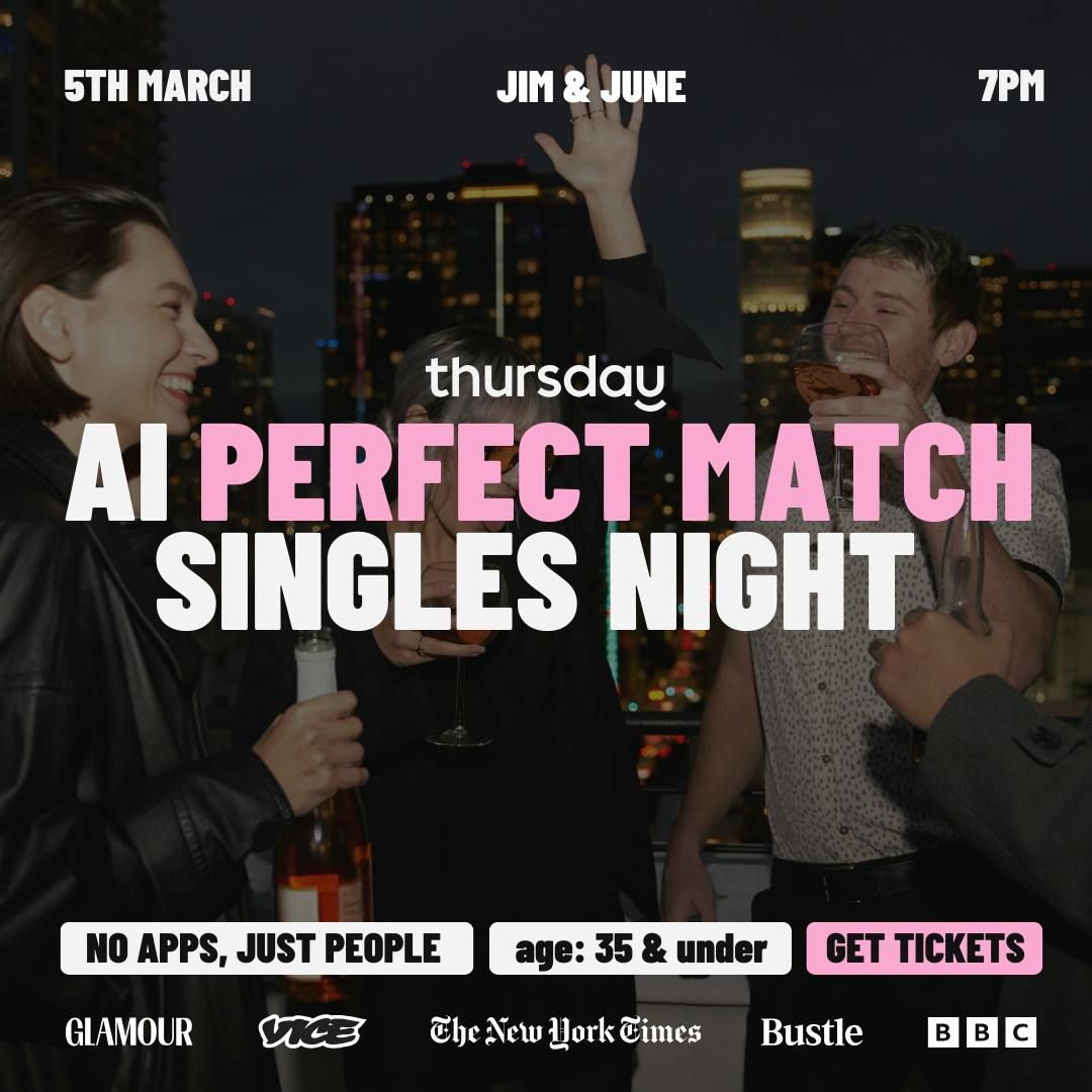 We are having a special evening at Jim & June, the wonderful New York inspired location! Thursday will be partnering on this evening with Matchbox: a software that uses relationship science to find your most compatible match at the party. Doors open at 7.00pm and close at 8.30pm – you will receive a questionnaire to fill out on arrival. A schedule is planned for this evening to ensure a unique experience.