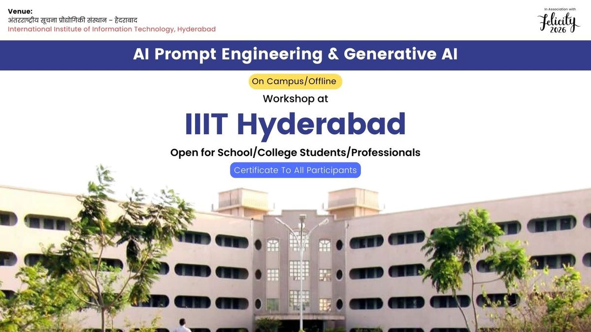 AI Prompt Engineering & Generative AI Workshop at IIIT HyderabadMastering the Art of Communicating with AIUnlock the full potential of AI tools like ChatGPT, Claude, DeepSeek, and Gemini through powerful prompt engineering techniques. This hands-on workshop will help you master the art of writing prompts that drive precise, creative, and task-specific results – whether you’re writing, coding, ideating, or automating workflows.This workshop is for those who want to:1. Master prompt writing to improve the quality and relevance of AI-generated responses.2. Automate content creation, summarisation, and ideation using better prompt strategies.3. Understand frameworks like COSTAR and prompting types like zero-shot, few-shot, and chain-of-thought.4. Build smarter workflows by combining AI tools with automation platforms like Zapier.Course ModulesAudience IntroductionTiming: 10:30 AM – 11:00 AMWelcome & Icebreaker: "What's Your AI Skill Level?"Overview: What is Prompt Engineering & Generative AI?Real-life Examples of AI Outputs in Business & CreativityModule 1: Foundations of Prompt EngineeringTiming: 11:00 AM – 1:00 PMLearn how to talk to AI in a way that gets powerful and reliable results.Topics CoveredTypes of Prompts: Informational, Creative, Instructional, Role-basedPrompt Structures: Clarity, context, constraints, tone, and styleTechniques: Prompt chaining, zero-shot, few-shot learningRole Prompting: Teaching AI to act like a writer, coder, analyst, or mentorSkills AcquiredPrompt writing masteryLogical thinking & clarity in instructionMulti-step prompt planningAI response optimizationModule 2: Generative AI Tools in ActionTiming: 2:00 PM – 3:30 PMGet familiar with tools that generate text, images, and code – and apply them to real problems.Topics CoveredChatGPT, DeepSeek, Claude, and Gemini for Text-Based Use.Free & Paid Tool for realistic Image & Video Generation.Use Cases: Writing, email automation, presentation creation, branding, ideation, and coding.How to Choose the Right Tool for Your Goal.Skills AcquiredGenerative tool selectionCross-platform AI usagePractical problem-solving with AITime-saving workflow designModule 3: Hands-On Activities + Prompt BattlesTiming: 3:30 PM – 4:30 PMPractice live tasks, share your prompts, and see how others are prompting smarter.Topics CoveredLive Prompt Challenges (Group Activity).Compete to get the best AI output with the smartest prompt.Real-World SimulationsCreate content, generate reports, design concepts or write code.Discussion: Future of Prompt Engineering & Ethical AI Us.Skills AcquiredPrompt testing & improvement.Team collaboration using AI.Creative AI application.Awareness of AI limitations & ethics.