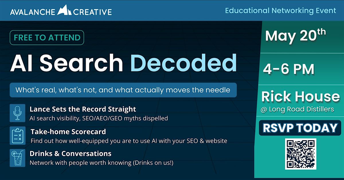 RSVP here (FREE TO ATTEND) - https://avalanchegr.com/ai-search-decoded