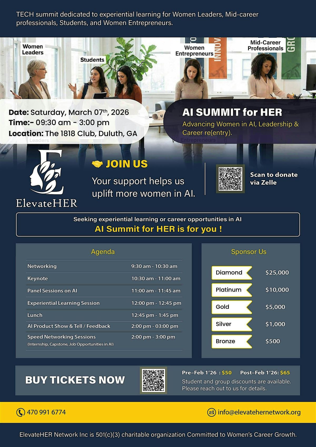 Welcome to the AI Summit for HER: Empowering Women, Students in Artificial Intelligence! 🚀 Join us at The 1818 Club on March 7, 2026 at 9:30 AM (Eastern Time) for a day filled with inspiring talks, networking opportunities, and hands-on workshops.