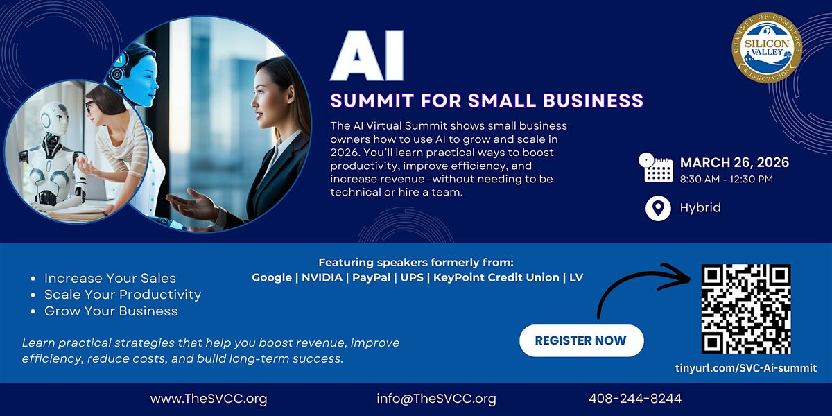 Presented by small businesses and entrepreneurs, featuring speakers formerly from Google, NVIDIA, PayPal, UPS, KeyPoint Credit Union, and LV.