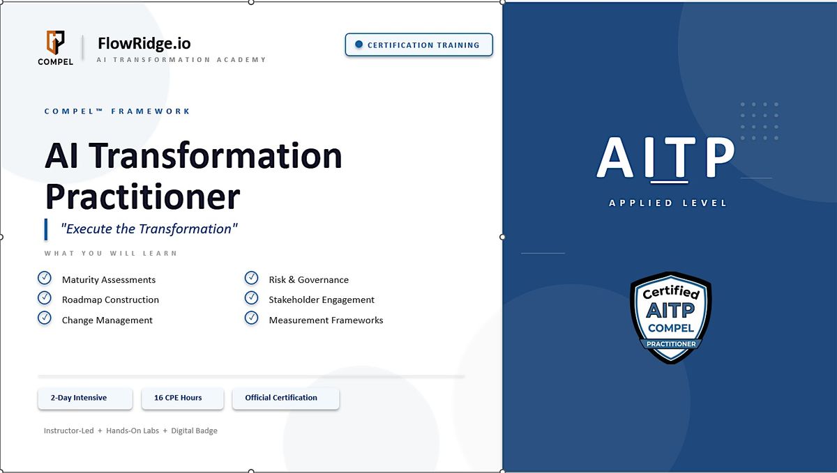 The AI Transformation Practitioner (AITP) course is designed to take you beyond conceptual knowledge and into applied execution using the COMPEL lifecycle: Calibrate, Organize, Model, Produce, Evaluate, Learn.