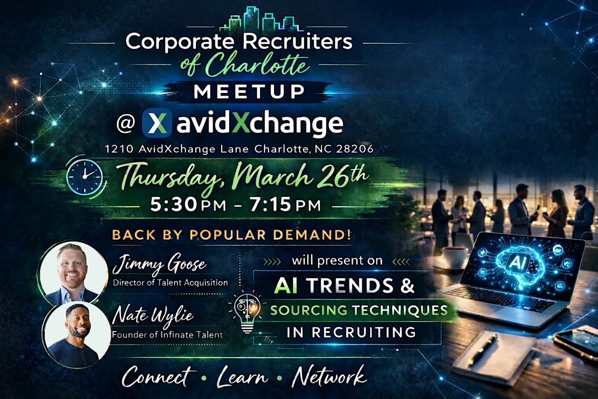 Join us for the next CROCs Meetup as we dive into AI Trends and Sourcing Techniques in Recruiting. Back by popular demand, last year’s session was incredibly well received—and with the rapid evolution of emerging technology, we’re excited to bring the group part 2 featuring Jimmy Goose and Nate Wylie at AvidXchange.