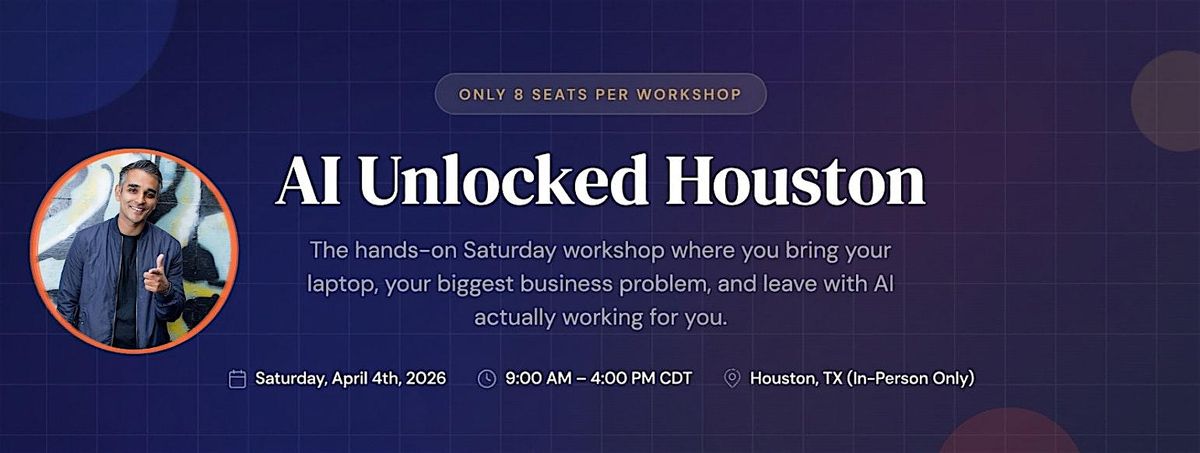 Info: Every attendee gets 10 minutes in the hot seat. You describe your biggest workflow bottleneck. We solve it together, live, while the whole room learns from each solution. Welcome to your AI mastermind.