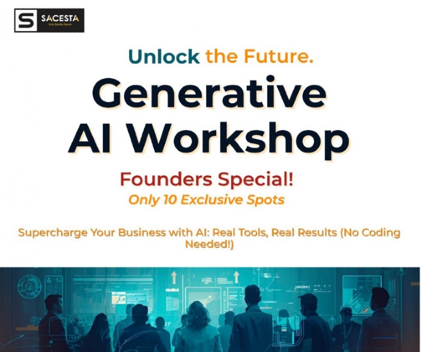 Join this exclusive small-group workshop (only 10 spots!) at Sacesta Technologies in Ahmedabad and discover how Generative AI can transform your business—without needing to be a tech expert.