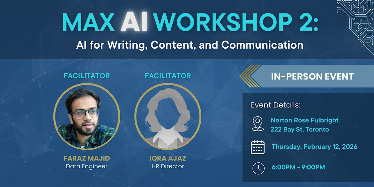 Join us in person for the second part of our AI Workshop Series! This time, we’ll dive into how AI can supercharge your writing, content creation, and communication skills. Whether you're a pro or just curious, come hang out, learn cool tips, and boost your creativity with smart AI tools. Don’t miss this hands-on session packed with fun and practical insights!