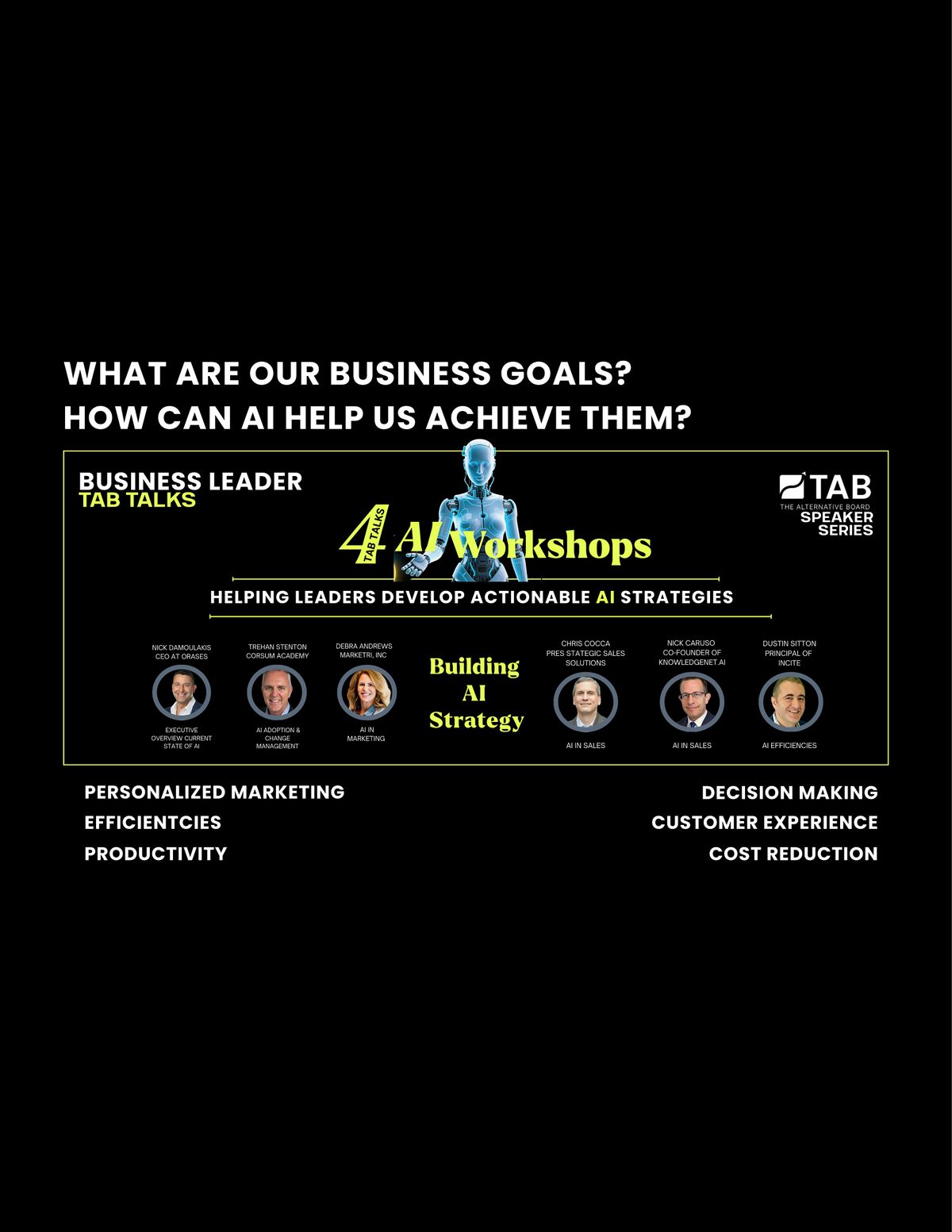 Becasue TAB is synonymous with assisting leaders to move from knowledge sharing to knowledge application, each year, The Alternative Board | TAB BWI hosts Business Leader Speaker Series for our members, sponsors, partners and prospects on crucial topics that impact growth, profitability and leadership.