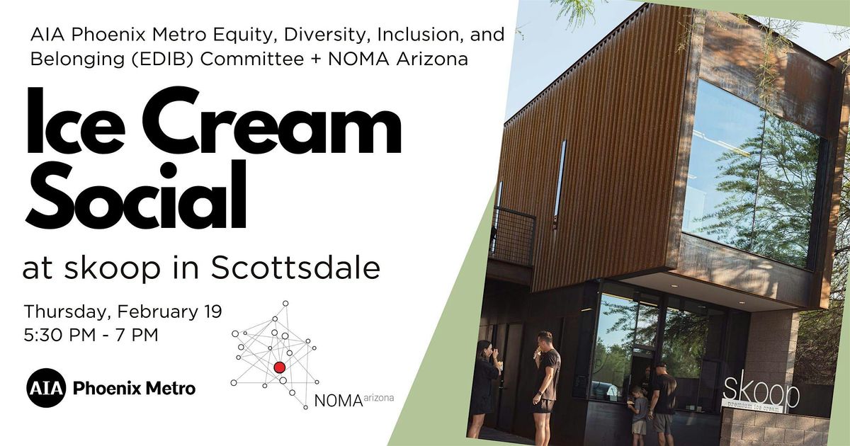 Join Join AIA Phoenix Metro Equity, Diversity, Inclusion and Belonging (EDIB) Committee + NOMA Arizona on Thursday, February 19 at skoop Premium Ice Cream to meet and mingle with the EDIB committee and network with other architecture professionals from AIA and NOMA while enjoying a sweet treat.