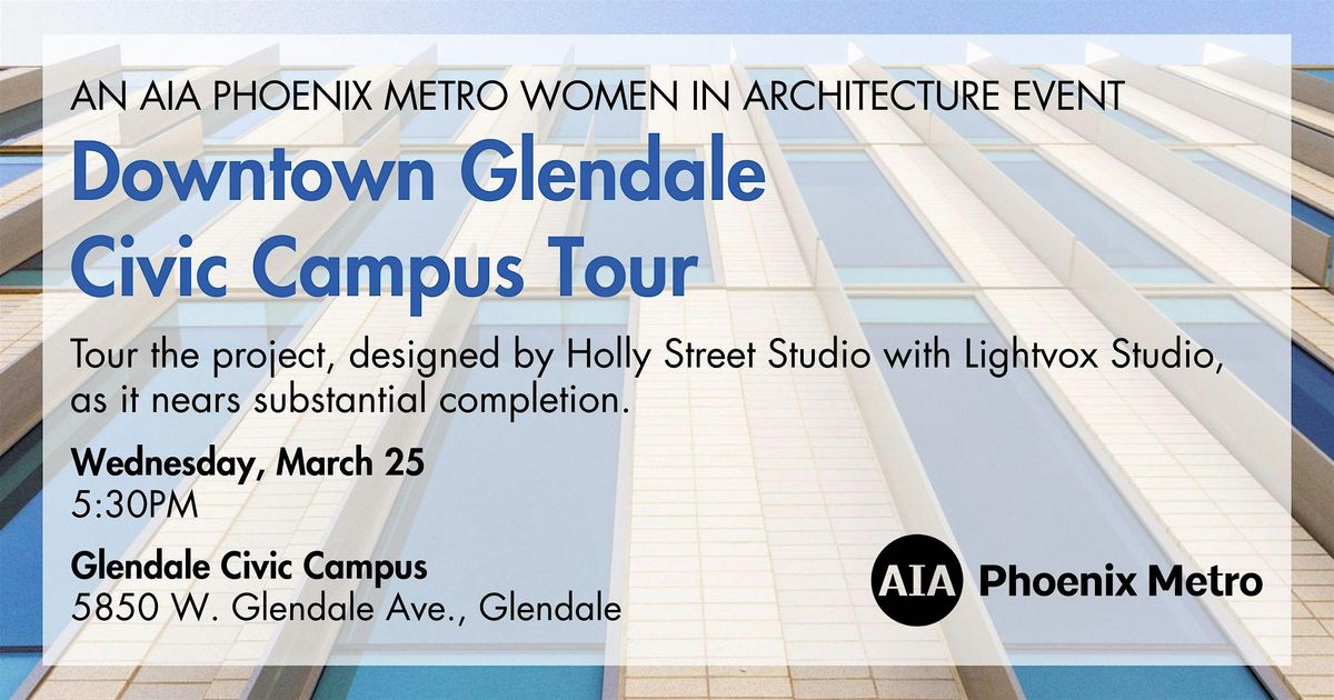 All are welcome to join AIA Phoenix Metro Women in Architecture for a guided tour of the Glendale Civic Campus revitalization as it nears substantial completion. The project reimagines Glendale City Hall and Council Chambers, Murphy Park, and the Lowell E. Rogers Amphitheater through thoughtful interior and exterior renovations that strengthen civic identity and enhance the public realm.