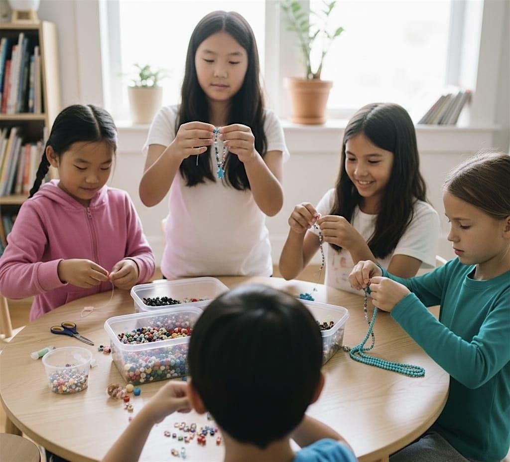 用彩色珠子創造有趣的設計。學習簡單的穿線技巧,將手工製作的手鍊帶回家炫耀或送給朋友!邀請家長坐下來和孩子一起製作一些美麗的東西。建議 5-10 歲兒童使用。