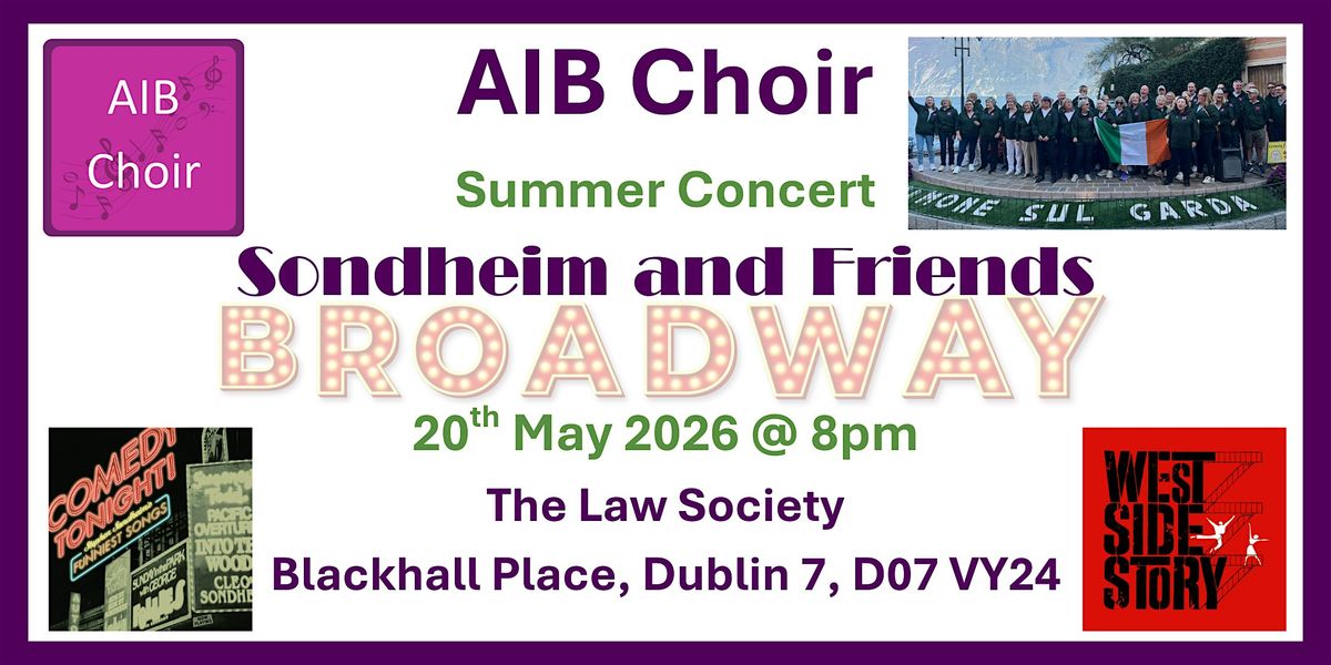 Step into the world of Sondheim and friends with the AIB Choir this summer. From the poignant to the playful, the concert promises an unforgettable journey through the musical genius of Stephen Sondheim. Join us for an evening of stunning harmonies and showstopping performances.