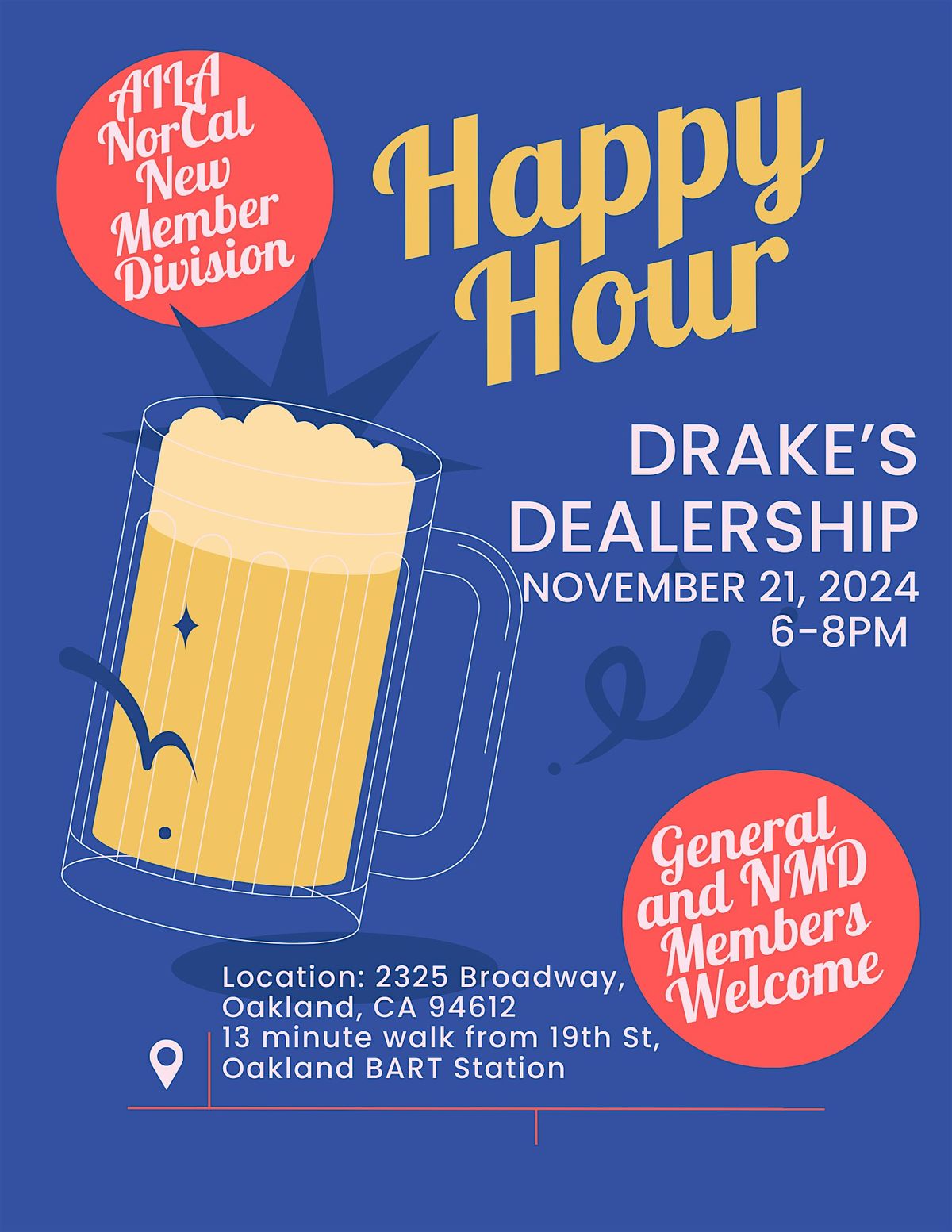 Join the New Member Division (NMD) for a happy hour at Drake's Dealership to connect and network!About this Event