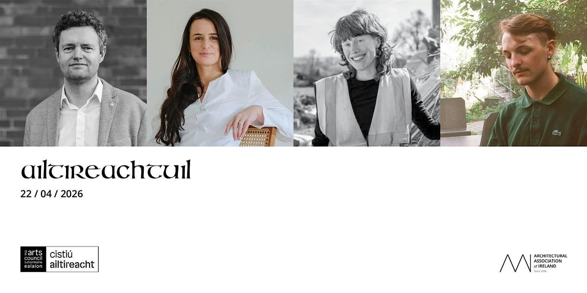 The AAI, in partnership with Orla O'Kane and the Ailtireachtúil Collective, is delighted to present the Ailtireachtúil Lecture, an evening of architecture as Gaeilge with Alice Bowler, Brian Ó Curnáin, Rachel Carmody and Seán Antóin Ó Muirí.