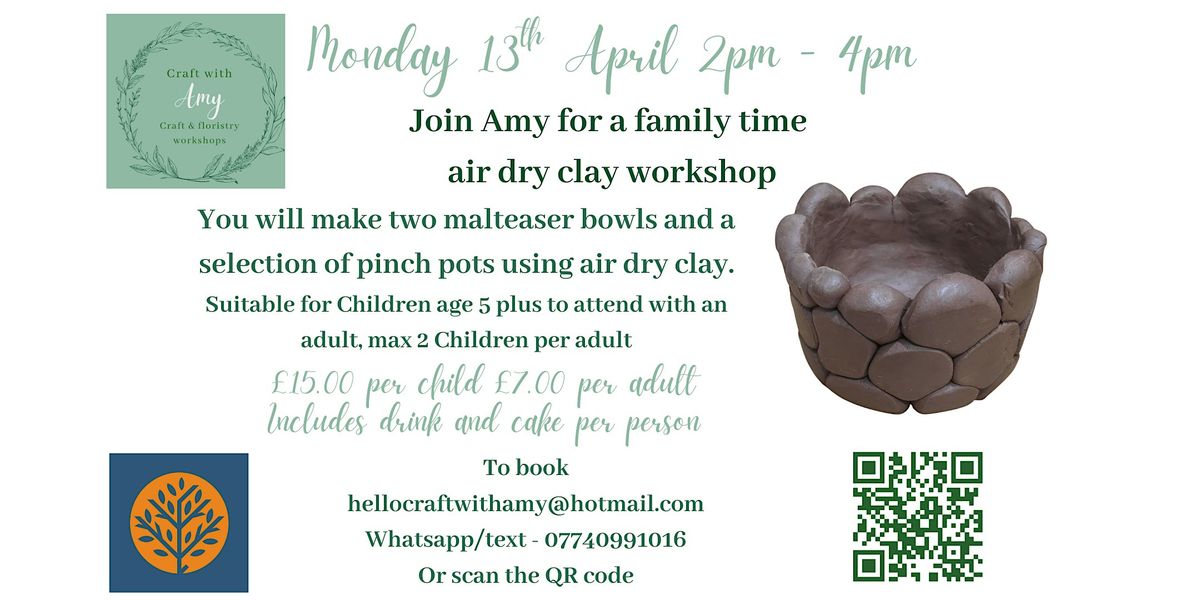 Join Amy at Arbor Seven for a family time workshop, you and your child will learn how to use air dry clay to create two malteaser bowls and a selection of pinch pots.
