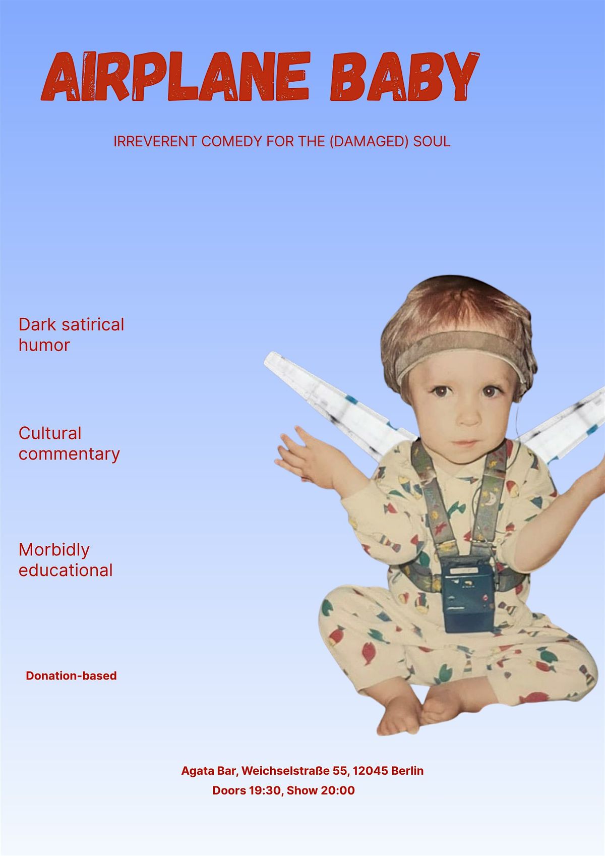The American-turned-Berliner, with a lot to say about both places, is bringing an hour of comedy packed with things a baby definitely shouldn't be saying to Agata Bar on 21st April.