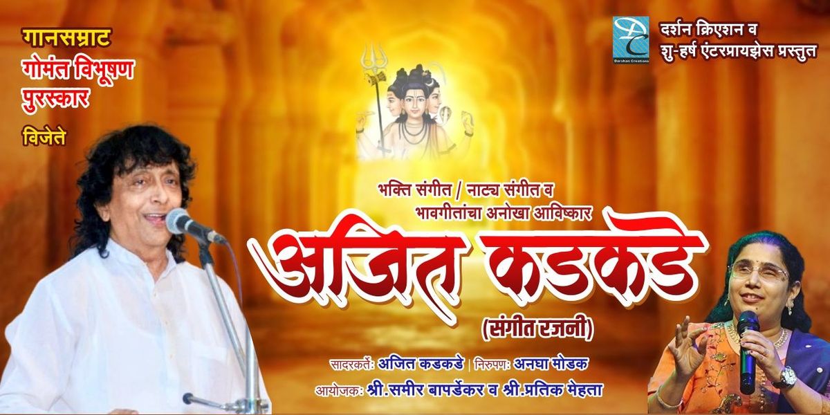 Pandit Ajitkumar Kadkade is a renowned Indian Hindustani classical and devotional singer, known for his soulful voice in bhajans, abhangs, and natyasangeet, hailing from Bicholim, Goa, and trained under legends like Pt. Jitendra Abhisheki. With a career spanning decades, he has released around 200 albums, performed globally, sung in multiple languages (Marathi, Hindi, Konkani, Kannada), and received honours like the 'National Ustad Allaudin Khan' award, ‘Gaan Samarth’ award and Goa's prestigious 'Gomant Vibhushan'.