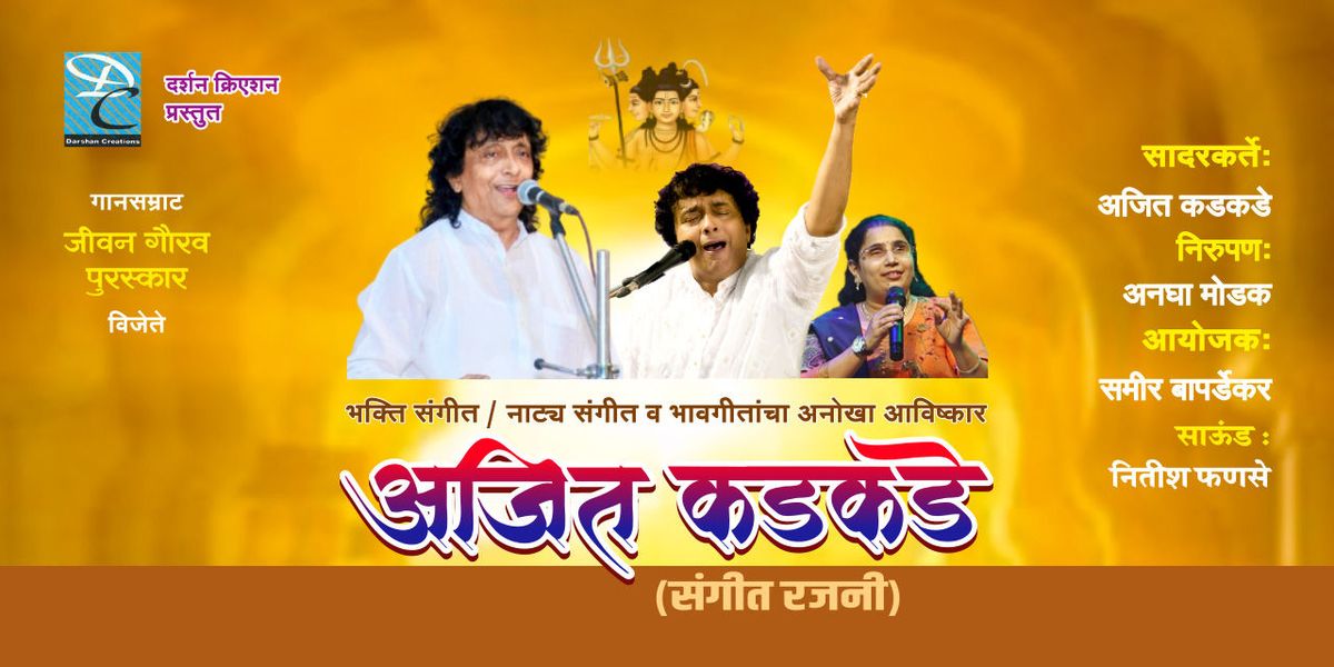 Ajit Kadkade: Sangeet Rajani is a celebrated musical concert featuring the legendary Indian classical and devotional singer, Pandit Ajit Kadkade. These events are typically organised as "Musical Nights" (Sangeet Rajanis) that showcase the rich heritage of Marathi and Hindi spiritual music.
