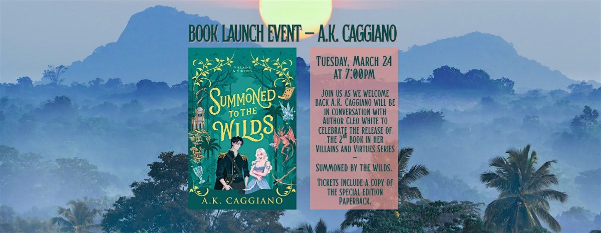 The Purple Couch Bookshop is delighted to welcome back Author A.K. Caggiano to celebrate the release of Summoned to the Wilds, the second book in the Villains & Virtues series, in conversation with Author Cleo White. This is romantasy gold with an on-the-run Baroness determined to save the world and the demon lord at her side bent on its destruction . . . but will her tendency to bring out the good in the world extend to finally bringing out the good in him?