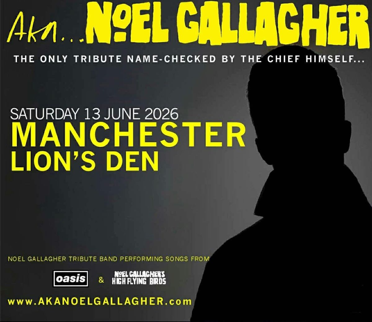 Catch the fantastic Aka Noel Gallagher at Lions Den, Manchester on Saturday 13th June 2026. The band will be blasting through their extended set of Oasis & High Flying Birds classics, deep cuts & more from 1994 through to the present day. The only tribute to Noel name checked by The Chief himself! The band will be celebrating their 10th anniversary in 2026, during which time they've played to thousands touring extensively throughout the UK, including several high profile festival slots & more.