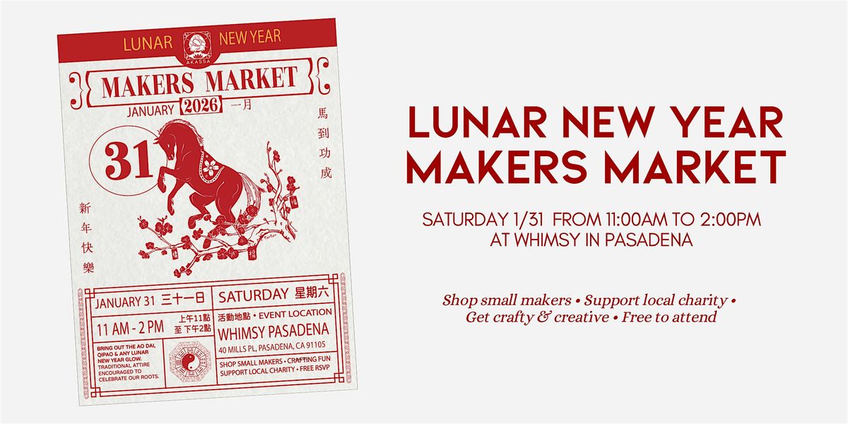Ring in the year of the horse with AKASSA Makers Market, a festive gathering celebrating creativity, culture, and community. Join us in Pasadena for a day of shopping small, hands-on making, and welcoming the new year together.