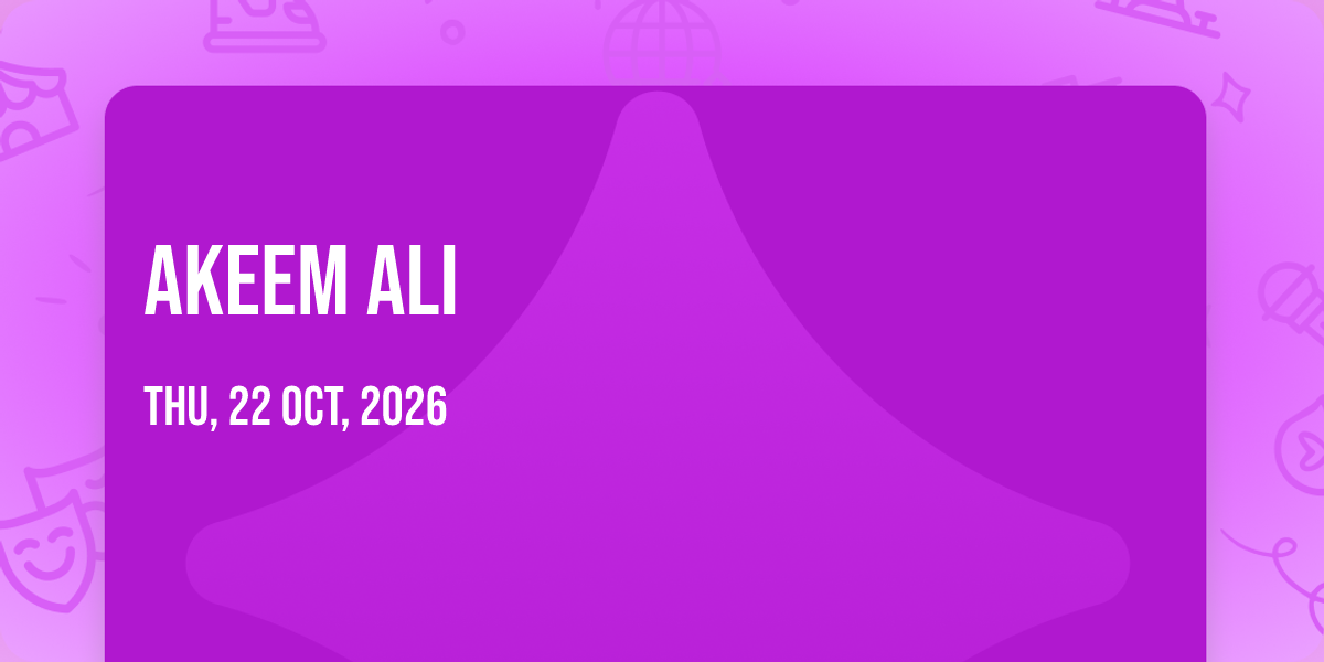 ⨠Experience the magic of Akeem Ali, where moments become memories that last a lifetime! šļø The iconic Neumos in Seattle, WA sets the perfect stage for an unforgettable celebration on October 22nd, 2026 at 04:00 PM. š It's been a curated experience that brings together the best of entertainment and innovation, creating an atmosphere of wonder and excitement. From the moment you arrive, you'll be immersed in a world where the ordinary transforms into the extraordinary. š Book early to secure your place in what promises to be an event that will be talked about for years to come!http://maps.seatics.com/GeneralAdmissionEvent_2018-10-03_1713_SVGC_tn.gif